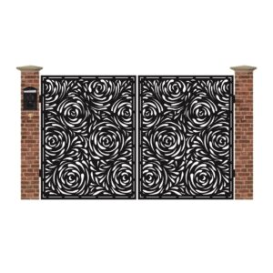 Poarta acces auto mica din tabla debitata cu plasma ROSES 3000×1940 mm